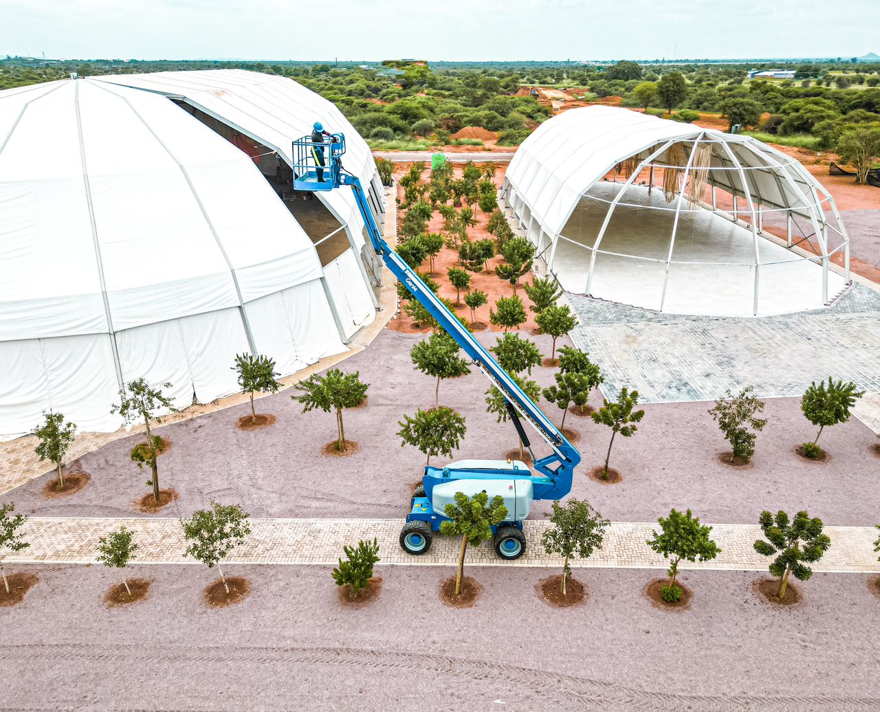 Our dome structure transforms open space into destination. Curved walls that draw the eye. Room that breathes. A silhouette that says something different is happening here.